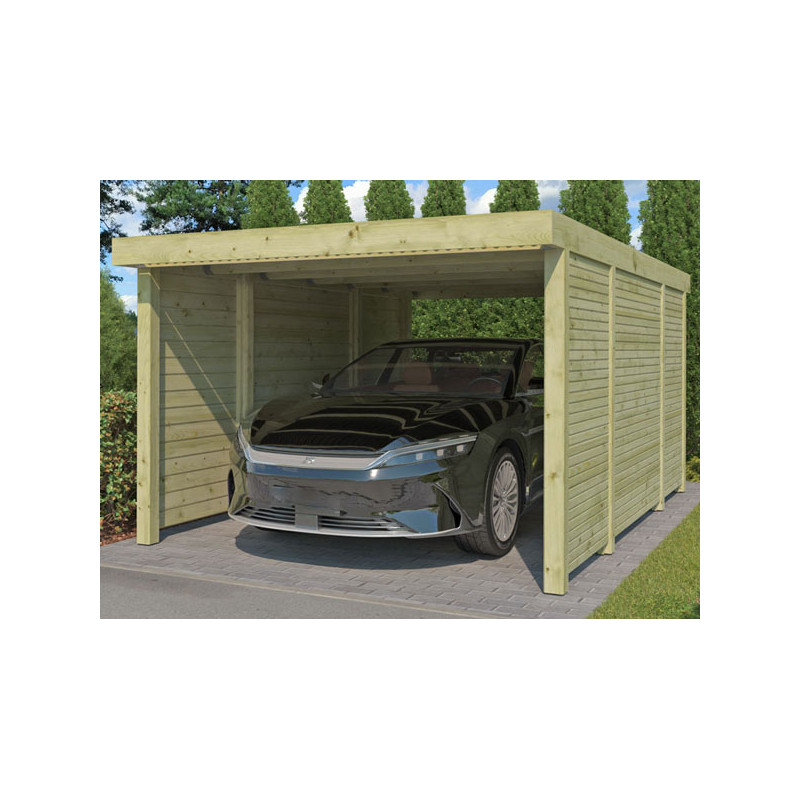 | Descriptif | Carport bois traité toit plat + 2 Parois latérales |