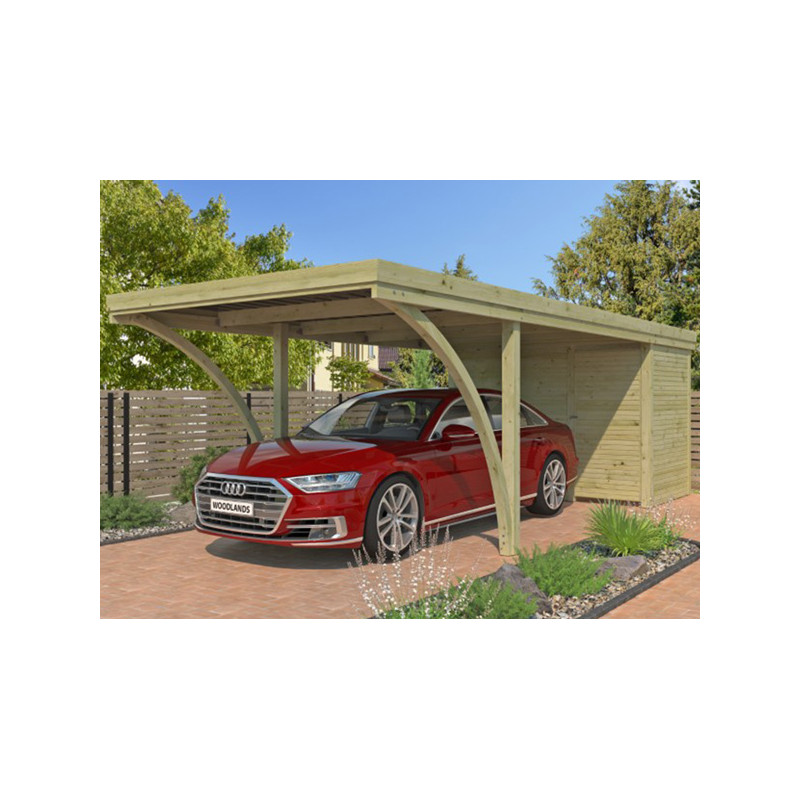Dimension hors tout : L604 x P649 x Ht252 cm Surface carport : 31.7 m² Surface remise : 3.6 m² Hauteur de Passage : 207 / 234 cm Largeur de Passage : 572 cm Matière : Pin sylvestre , autoclave 10 poteaux : 12 x 12 cm Toiture : Toit plat Couverture : Polycarbonate gris 0.8 mm Option : Platines d'ancrage au sol Garantie : 3 ans